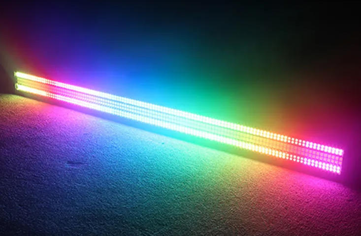 मनोरंजन और मंच अनुप्रयोगों में गतिशील दृश्य प्रभावों के लिए कुल 72 खंडों की विशेषता वाली पेशेवर आरजीबी स्ट्रोब प्रकाश व्यवस्था।